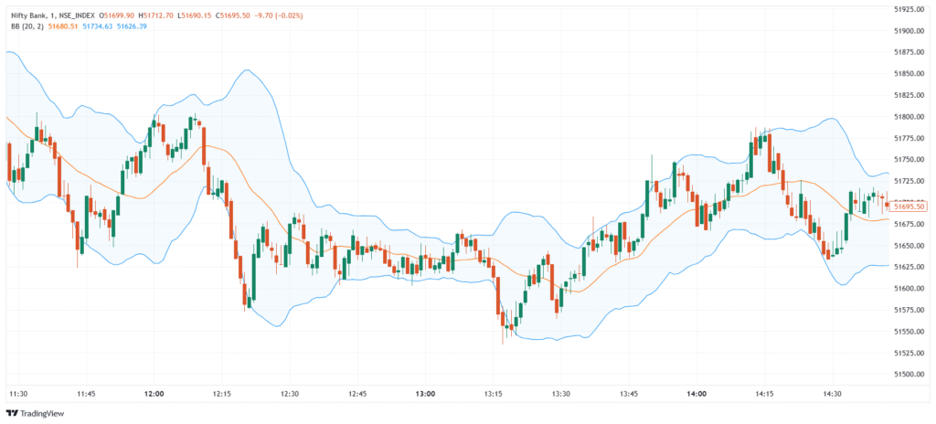 - Band Width → The distance between upper and lower bands; shows market volatility.