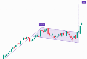 A Bullish Flag is a short-term continuation pattern that appears after a strong price rally. It forms a small downward or sideways consolidation resembling a flag on a pole. Once the price breaks out above the flag, it signals a continuation of the uptrend. This pattern indicates a brief pause before the next upward move.