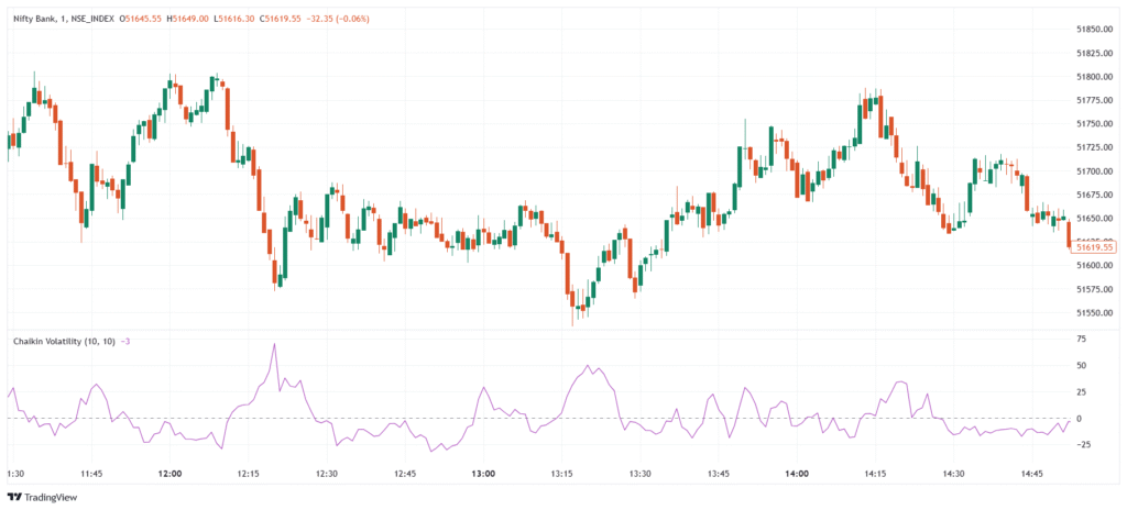 - Breakout Strategy → Watch for a sudden rise in Chaikin Volatility after a period of contraction to confirm breakout strength.