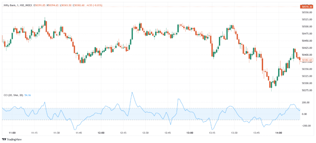 • CCI Line → Fluctuates above and below zero, typically between +100 and -100.