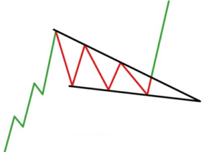 - Indicates buyer accumulation, as price moves within a narrowing range.
