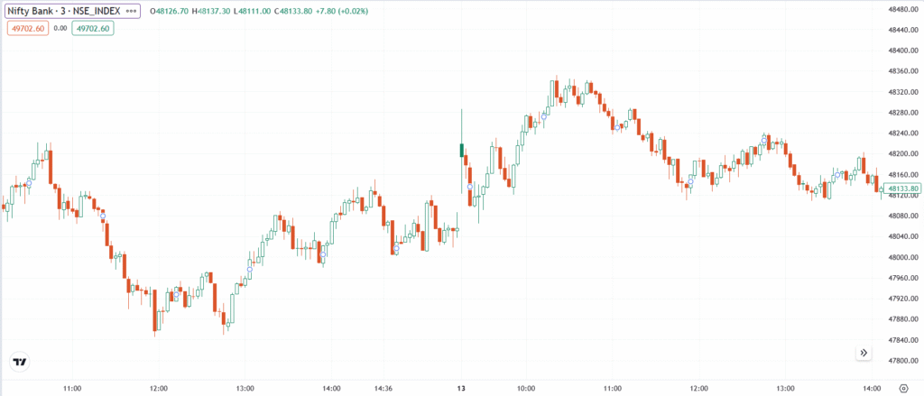 - Hollow (empty) candle = Bullish move (Close > Open).