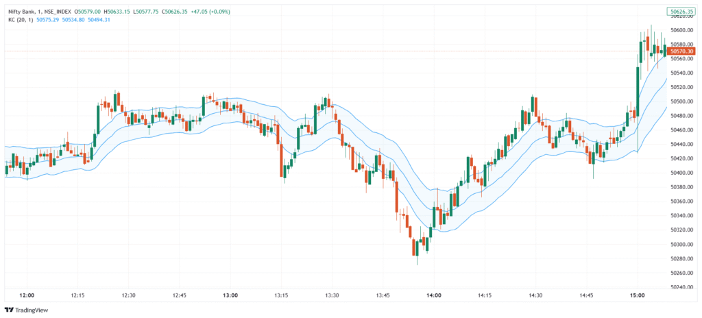 - Upper Band → EMA + (Multiplier × ATR), shows resistance or overbought level.
