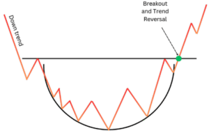 A U-shaped formation that indicates a gradual reversal from a downtrend to an uptrend. The pattern develops over an extended period, showcasing a slow shift in market sentiment from bearish to bullish. A breakout above the resistance level confirms the trend reversal.