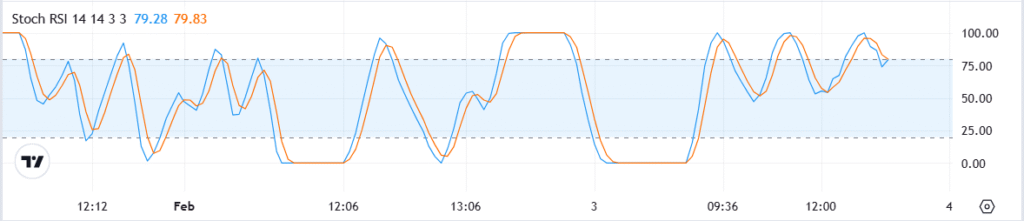 - Stoch RSI Line → A plotted line oscillating between 0 and 1 (or 0-100), showing price momentum.
